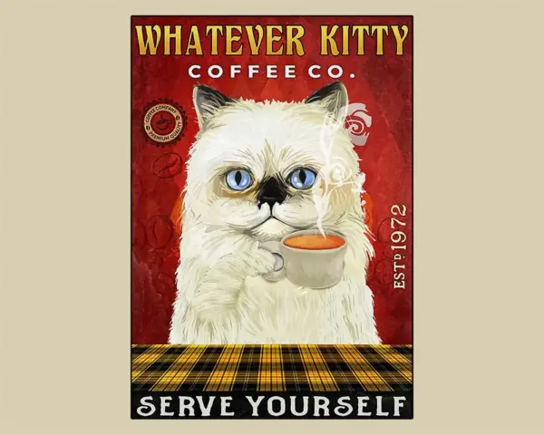 Whatever Kitty Coffee Co Serve Yourself Cute Cat Fan Lover Poster Art Print Wall House Office Decor For Home Living Room Bedroom No Frame