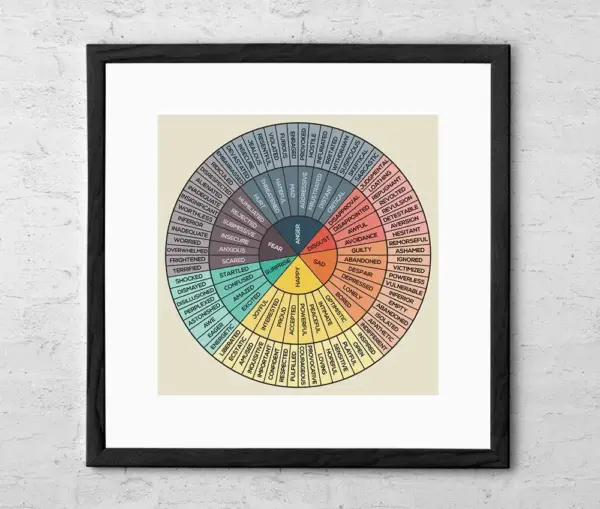 Wheel Of Emotions Art Print Feelings Wheel Chart Therapy Poster Dbt Counseling Poster Cbt Therapy Mental Health Posters Gift For Therapist Framed Matte Canvas