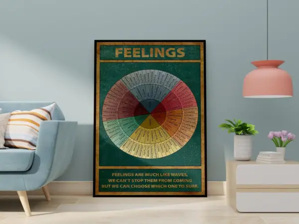 Wheel Of Feelings Emotions Chart Square Canvas Cbt Mental Health Therapy Counseling Wall Art Wheel
