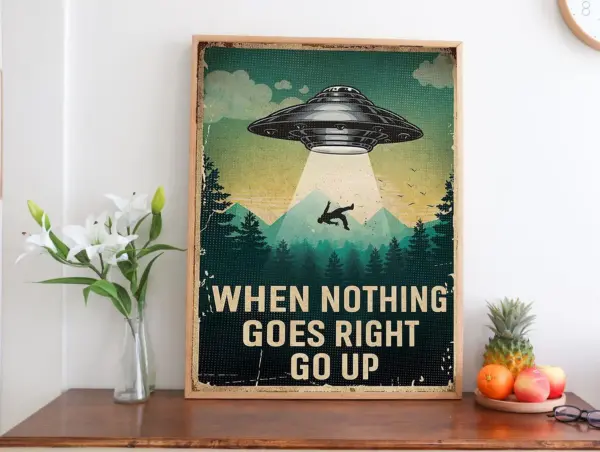 When Nothing Goes Right Go Up Poster Alien Wall Art Alien Poster Ufo Wall Decor Ufo Alien Wall Art Space Wall Art Space Wall Art