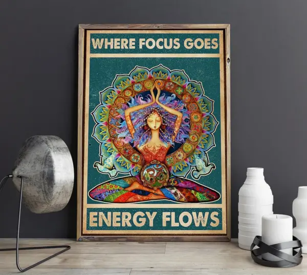 Where Focus Goes Energy Flows Yoga Girl Vertical Poster Yoga Lovers Poster Vintage Hippie Poster Yoga Lovers Print Art