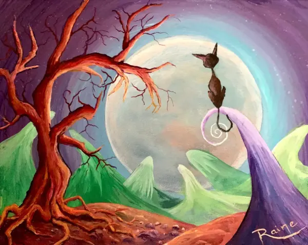 Whimsical Black Cat Twisted Tree Art Moon Art Cat Art Poster Cat Lover Art Halloween Art Surreal Art Surrealist Tree Art Print