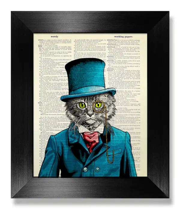 Vintage Cat Art Print - Blue Suit Cat Book Page Art Poster