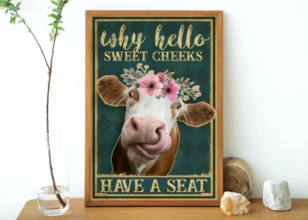 Why Hello Sweet Cheeks Dairy Cow Have A Seat Vertical Poster No Frame