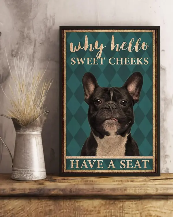 Why Hello Sweet Cheeks Have A Seat Funny Frenchie Poster Wall Art Dog Lover Gift Bathroom Wall Art Farmhouse Signs No Framed