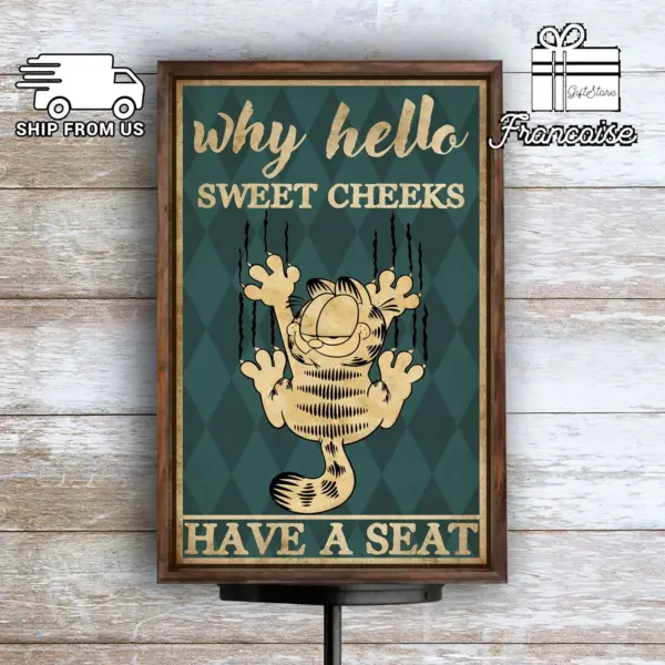 Why Hello Sweet Cheeks Have A Seat Poster Living Home Bathroom Restroom Toilet Decor Poster Garfield