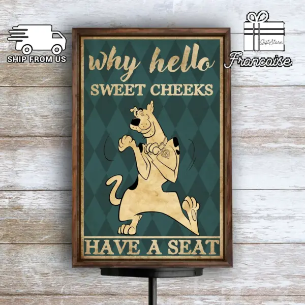 Why Hello Sweet Cheeks Have A Seat Poster Living Home Bathroom Restroom Toilet Decor Poster Scooby