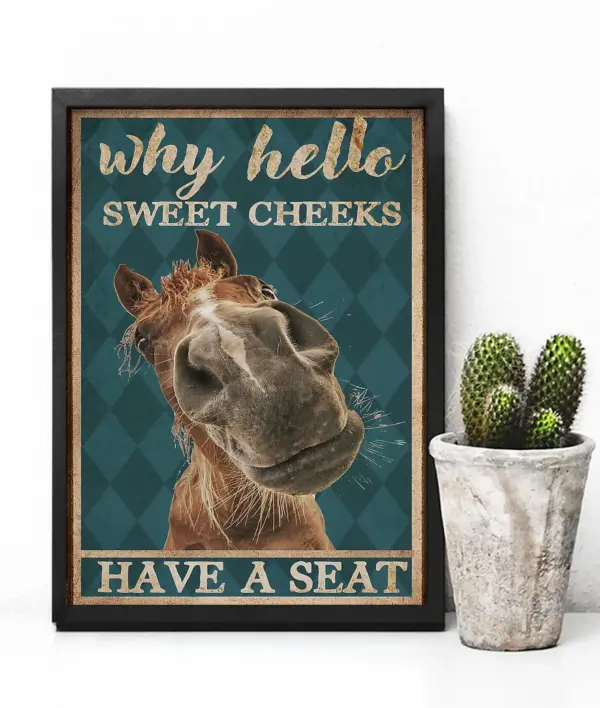 Why Hello Sweet Cheeks Have A Seat Poster Love Donkey Wall Art Bathroom Poster Animal Canvas Print Funny Donkey Print Vintage Poster