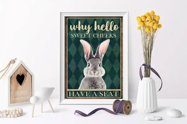 Why Hello Sweet Cheeks Have A Seat Poster Rabbit Poster Funny Rabbit Wall Art Bathroom Hanging Decor Animal Poster Rabbit Lover Gift