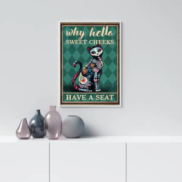 Why Hello Sweet Cheeks Poster Funny Cat Poster Cat Wall Decor Cute Cat Decor Bathroom Decor Bathroom Wall Art Home Decor