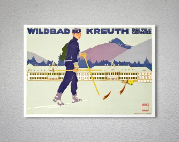 Wildbad Kreuth Bei Te Gernsee Vintage Ski Poster By Ludwig Hohlwein Poster Paper Sticker Or Canvas Print Gift Idea Christmas Gift