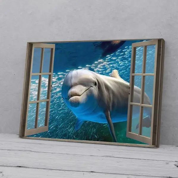 Window View Dolphin Horizontal Canvas Hang Print Poster Family Home Decor House Decoration Housewarming Gift Birthday Painting