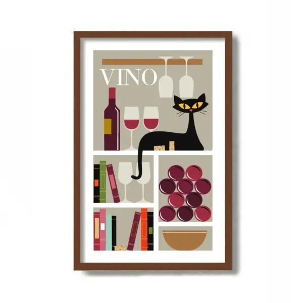 Wine Lover Gift Black Cat Print Mid Century Modern Art Cat Lover Gift Wine Glasses Wall Decor For Wine Bar Wine Gift For Women