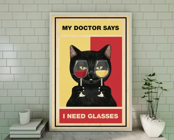 Wine Poster My Doctor Says I Need Glasses Black Cat Art Print Wine Lover Gift Love Wine Wall Art Funny Cat Poster Best Gift Ever
