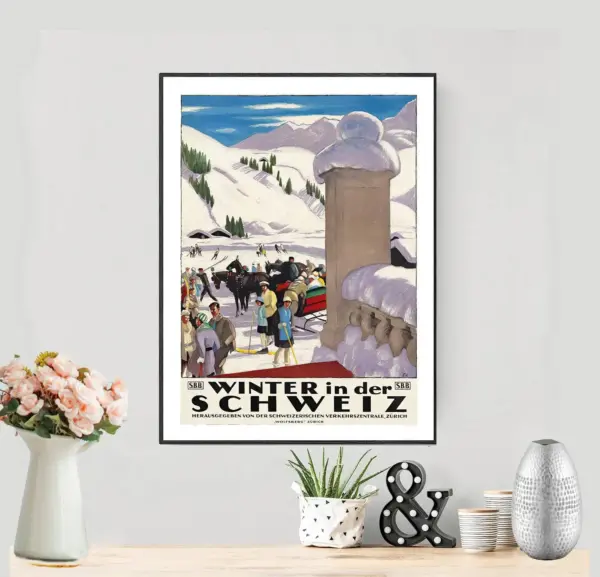 Winter In Der Schweiz Vintage Travel Poster Poster Print Sticker Or Canvas Gift Idea