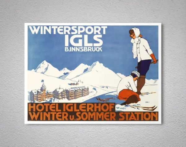 Wintersport Igls B Innsbruck Hotel Iglerhof Vintage Travel Poster Poster Paper Sticker Or Canvas Print Gift Idea Christmas Gift