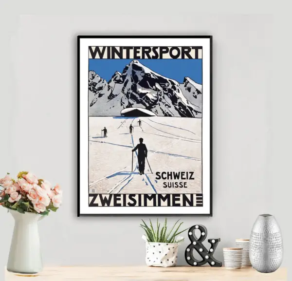 Wintersport Zweisimmen Suisse Vintage Travel Poster Poster Paper Sticker Or Canvas Print Gift Idea