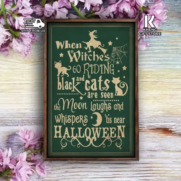 Witch And Cat Lovers When Witches Go Riding Black And Cats Area Seen Poster Halloween Home Living Decor Poster