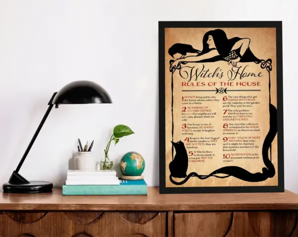 Witch S Home Rules Of The House Poster Witch Rules Art Print Witchy Decor Witch And Cat Canvas Black Cat Artwork Signs For Home