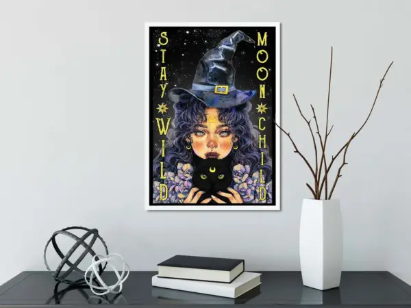 Witch Stay Wild Moon Child Poster Witch Art Cat Poster Art Print Signs For Home Witch Poster Hanging Poster Wall Decoration