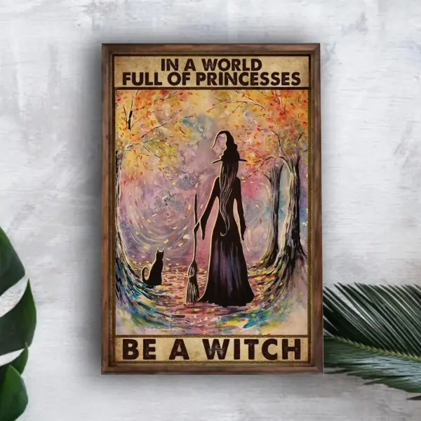 Witch Witchcraft Girl And Cat In A World Full Of Princesses Be A Witch Poster Halloween Home Living Decor Poster