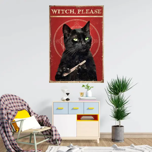 Witchcraft Cat Witch Please Poster Framed Matte Canvas