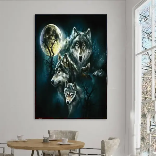 Captivating wildlife art poster featuring a majestic white wolf in a stunning snow-covered landscape - perfect for nature and animal lovers