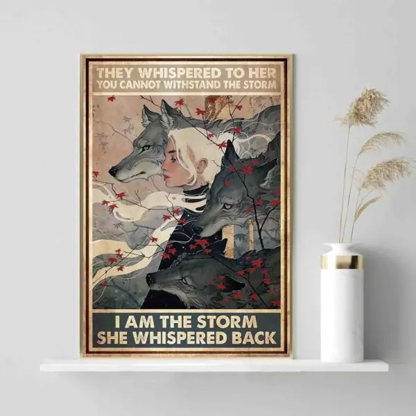 Wolves They Whispered To Her Girl Flowers Wall Art I Am The Storm Poster Inspirational Poster No Frame Birthday Gift Home Decor