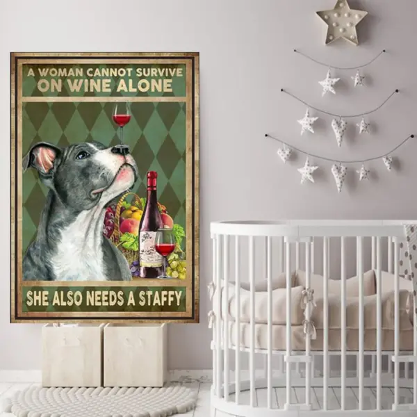 Staffy Dog & Wine Lover Poster - Funny Women's Gift