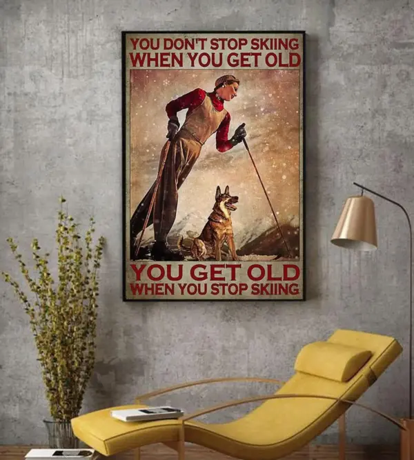Skiing Grandma Poster - Woman Skiing with Dog