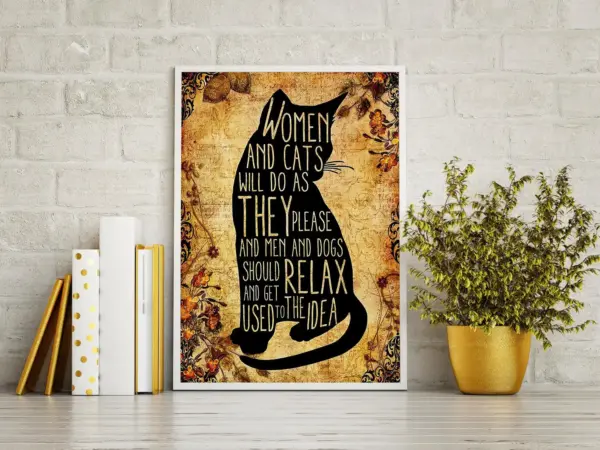 Women And Cats Will Do As They Please Vertical Poster Cat Vertical Art Print Black Cat Art Wall Sewing Lovers Poster