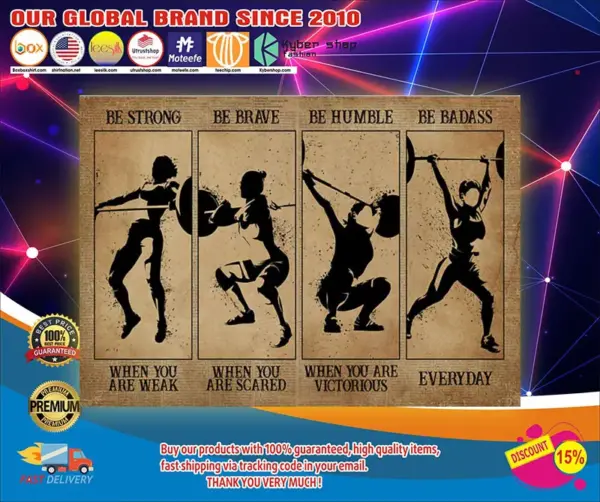 Women Weightlifting Be Strong Be Brave Be Humble Be Badass Poster