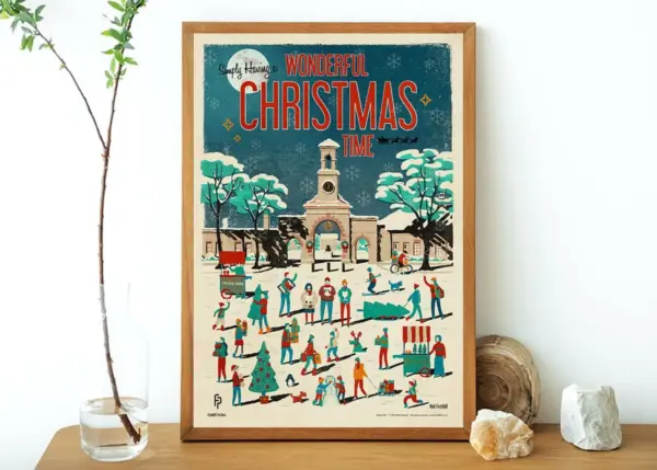Wonderful Christmas Time Poster Retro Christmas Poster Christmas Lover Reindeer And Santa Poster No Frame
