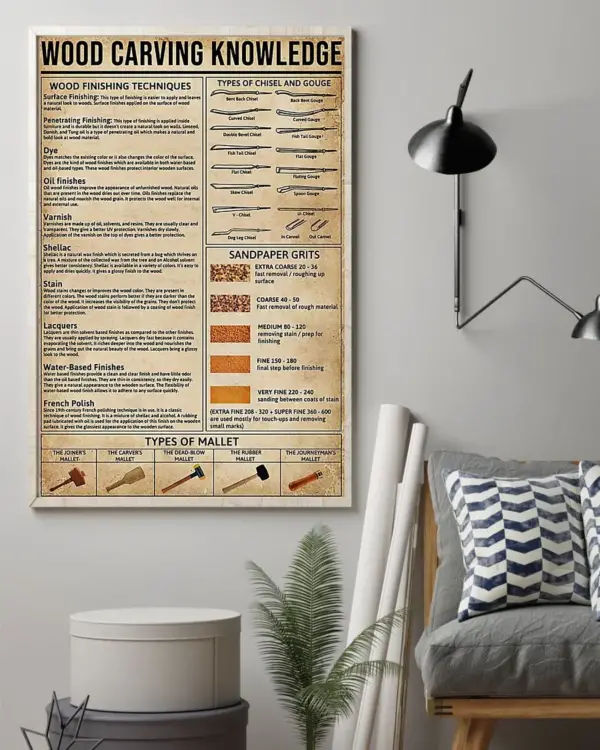 Wood Carving Knowledge Wood Finishing Techniques Poster