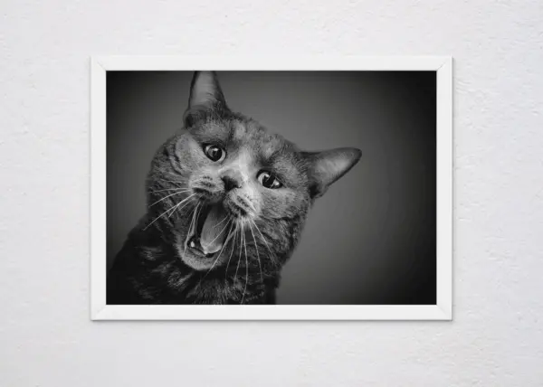 Yawning Cat Print Framed Poster Cat Mom Dad Gift Framed Posters Vet Clinic Decor Animal Nursery Decor Black And White Living Room Decor