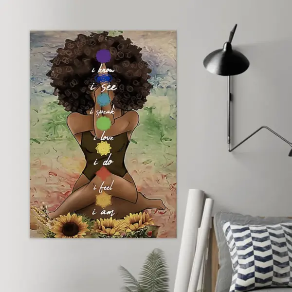 Yoga African American Poster Black Girl With Sunflower Posterafrican American I Know I See I Speak I Am Poster Sign For Home Home Wall Art