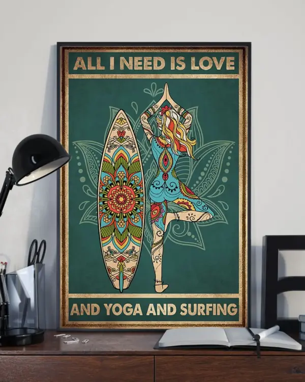 Yoga And Surfing Canvas Art Yoga Prints Poster Yoga Wall Art Meditation Decor Wall Art Signs For Home