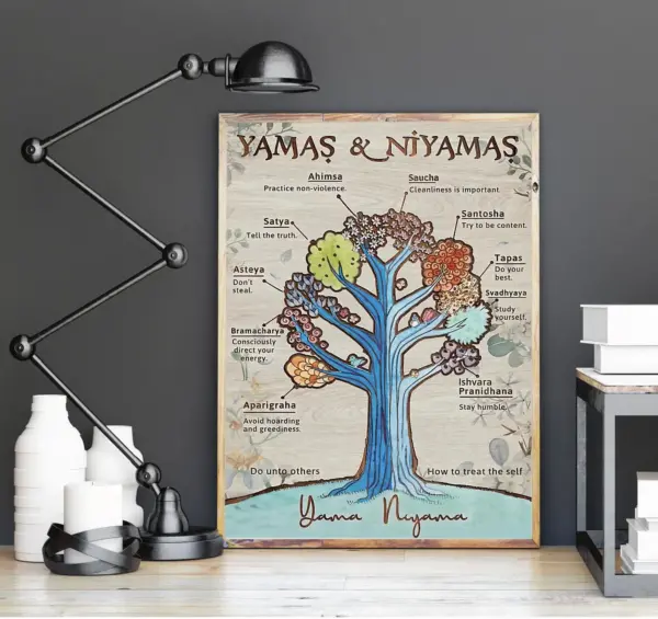 Yoga Floral Yamas And Niyamas Vertical Poster Yoga Lovers Poster Vintage Hippie Poster Yoga Lovers Print Art