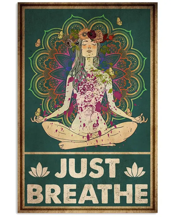 Yoga Just Breathe Canvas Art Yoga Prints Poster Yoga Wall Art Meditation Decor Wall Art Signs For Home