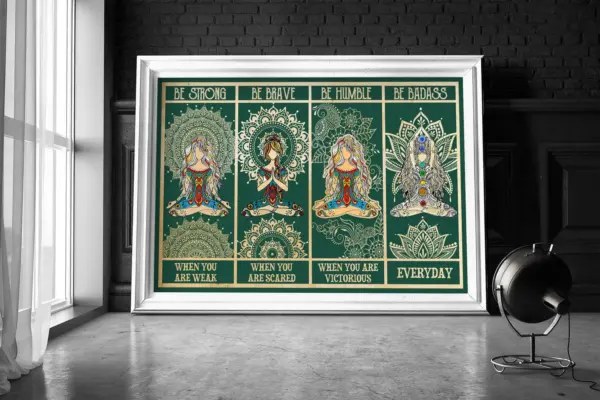 Yoga Poster - Be Strong, Brave, Humble & Badass - Vintage Hippie Woman Wall Art