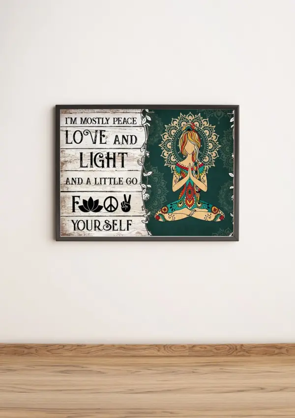 Yoga Poster I M Mostly Peace Love And Light Vintage Poster Love Yoga Canvas Namaste Girl Poster Yoga Gift Vintage Hippie Girl Art