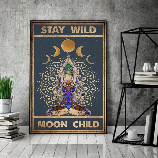 Yoga Poster Stay Wild Moon Child Poster Hippie Girl Yoga Poster Vintage Yoga Poster Love Yoga Canvas Hippie Girl Yoga Lover Gift H