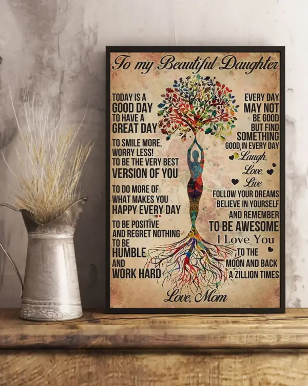 Yoga To My Beautiful Daughter Canvas Art Yoga Prints Poster Yoga Wall Art Meditation Decor Wall Art Signs For Home