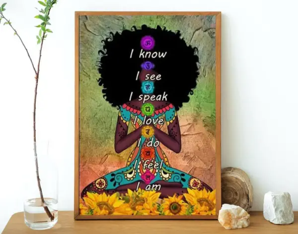 Black Girl Yoga Poster - Vintage Namaste Wall Art