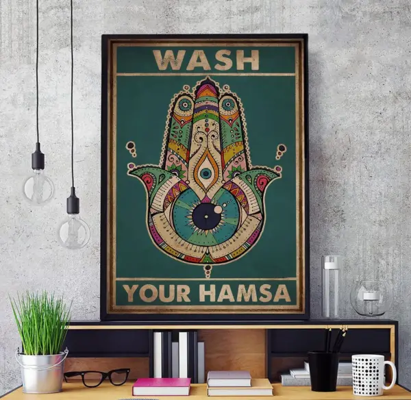 Yoga Wash Your Hamsa Poster Bathroom Decor Bathroom Art Meditating Yoga Art Zen Yoga Print Yoga Wall Art Yoga Art Yoga Gift