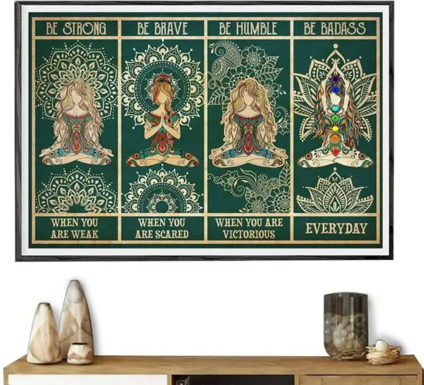 Yoga Woman Vintage Poster: Be Strong, Be Badass