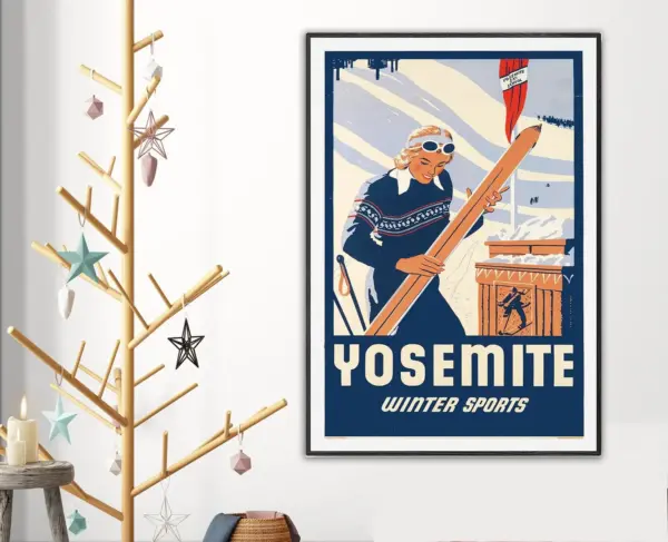 Yosemite Winter Sports Vintage Travel Poster Poster Print Sticker Or Canvas Print Gift Idea