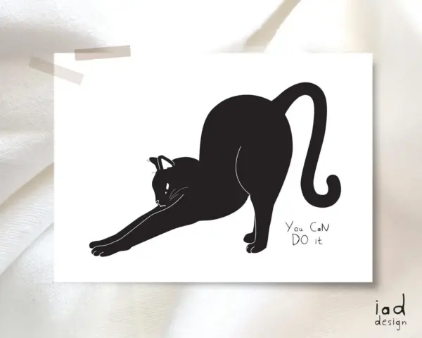 You Can Do It Printable Art 01 Fun Black White Cat Prints Minimalistic Cat Poster Home Decor Office Decor Instant