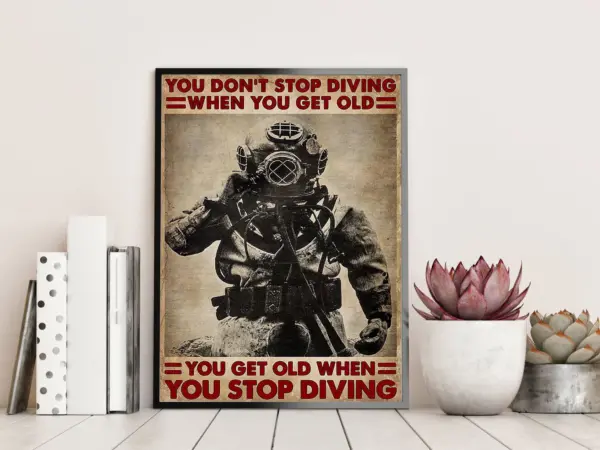 You Don T Stop Diving When You Get Old Poster Scuba Diving Poster Dive Lover Gift Sports Poster Unframed Paper Poster