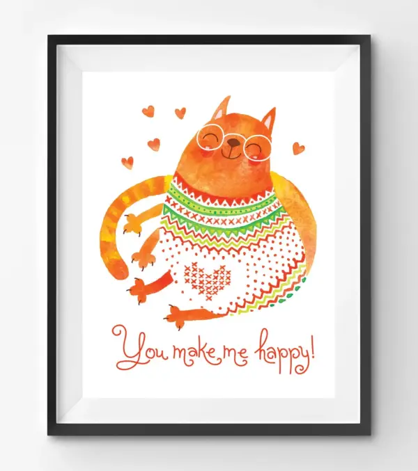 You Make Me Happy Quote With Funny Happy Cat Lying Print Happy Quote Art Print Cat Illustration Art Cat Quote Print Cat Illustration Art